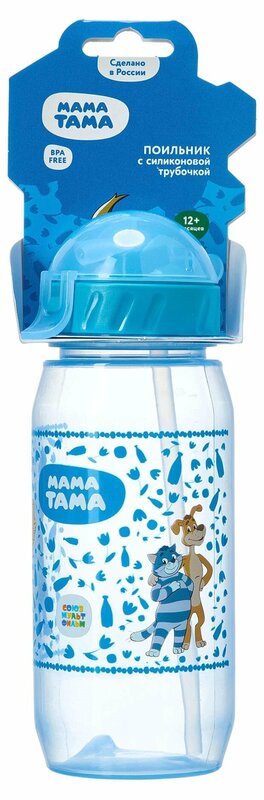 Мама Тама Поильник с силиконовой трубочкой с 12 месяцев голубой 400 мл