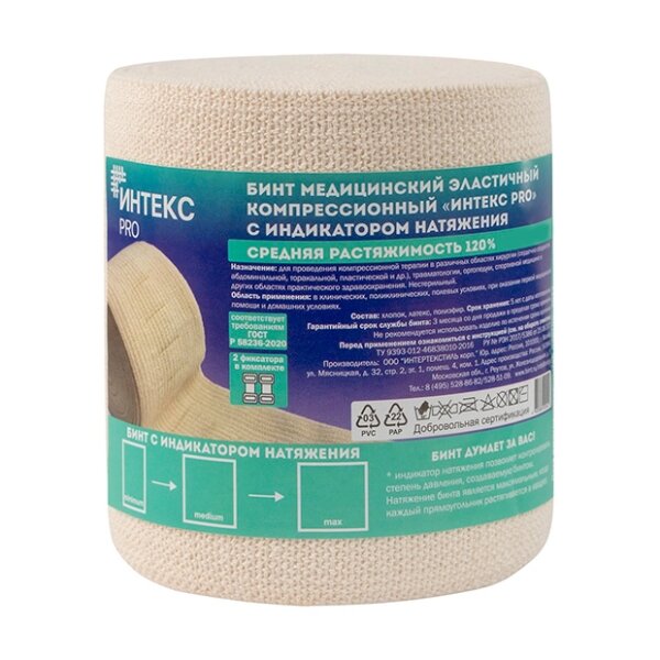 Бинт эластичный Интекс Pro с индикатором натяжения средней растяжимости с застежкой 5 м х 10 см