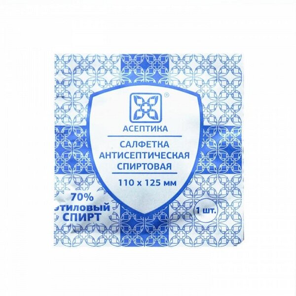 Салфетка антисептическая Асептика спиртовая 110 х 125 мм 1 шт.