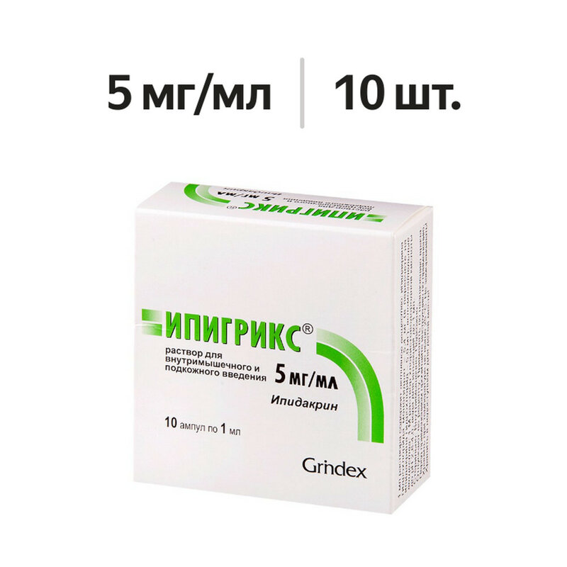 Препарат применяют в/м или п/к. Дозы и продолжительность лечения определяют индивидуально в зависимости от степени тяжести заболевания. Заболевания периферической нервной системы При моно- и полиневропатии различного генеза: п/к и в/м 5-15 мг 1-2 раза/сут; курс 10-15 дней (в тяжелых случаях – до 30 дней); далее переходят на прием ипидакрина в таблетках. При миастении и миастеническом синдроме: п/к и в/м 5-30 мг 1-3 раза/сут; далее переходят на прием ипидакрина в таблетках. Общий курс лечения составляет 1-2 месяца. При необходимости лечение можно повторить несколько раз с перерывом между курсами в 1-2 месяца. Заболевания ЦНС При бульбарных параличах и парезах: п/к и в/м 5-15 мг 1-2 раза/сут, курс 10-15 дней; далее переходят на прием ипидакрина в таблетках. В период реабилитации при органических поражениях ЦНС: в/м 10-15 мг 1-2 раза/сут, курс до 15 дней; далее переходят на прием ипидакрина в таблетках.