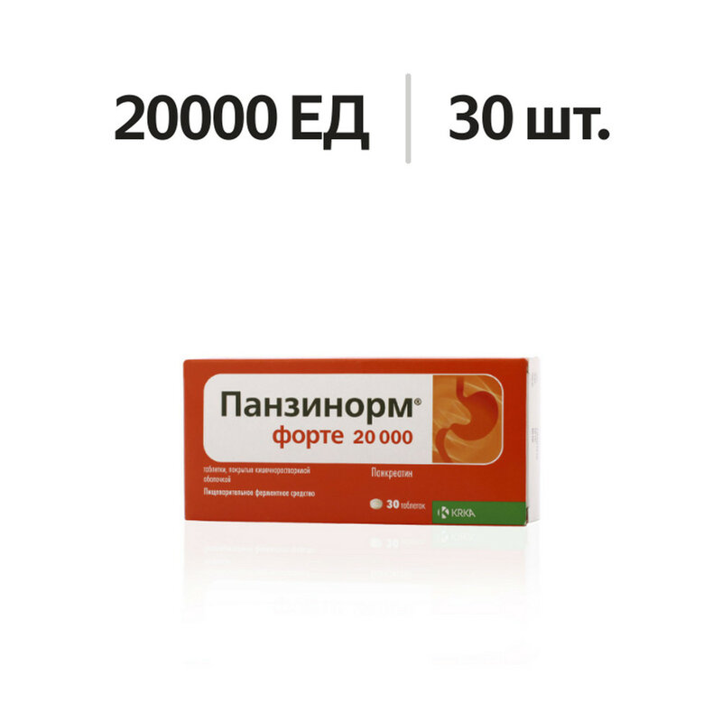 Панкреатин – ферментный препарат, улучшающий процессы переваривания пищи у взрослых и детей и тем самым уменьшающий симптомы ферментной недостаточности поджелудочной железы (метеоризм, изменение частоты и консистенции стула). Панкреатические ферменты, входящие в состав препарата, облегчают расщепление белков, жиров, углеводов, что приводит к их полному всасыванию в тонкой кишке. Препарат Панзинорм форте 20 000 представляет собой таблетки, содержащие свиной панкреатин, покрытые кишечнорастворимой (кислотоустойчивой) оболочкой. Когда таблетки достигают тонкой кишки, кишечнорастворимая оболочка быстро растворяется (при pH > 5,5), происходит высвобождение ферментов с липолитической, амилолитической и протеолитической активностью, что приводит к расщеплению жиров, углеводов и белков. Полученные в результате расщепления вещества затем всасываются напрямую либо подвергаются дальнейшему расщеплению кишечными ферментами.