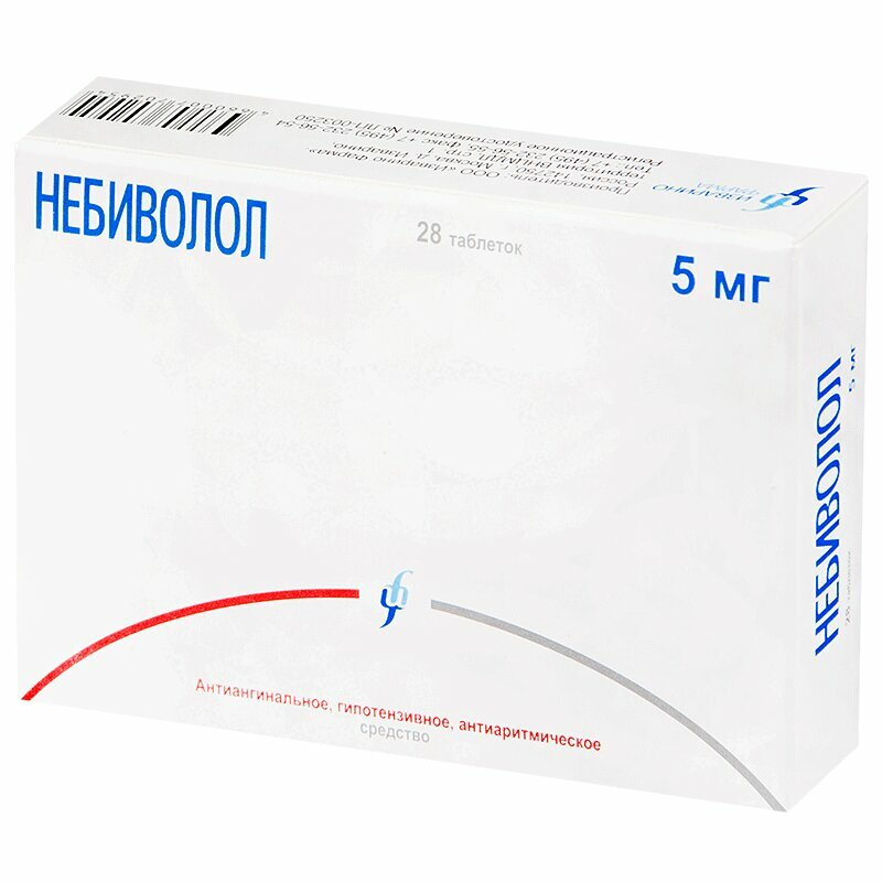 Небиволол является кардиоселективным β1-адреноблокатором, оказывает антигипертензивное, антиангинальное и антиаритмическое действие. Снижает повышенное артериальное давление (АД) в покое, при физическом напряжении и стрессе. Конкурентно и избирательно блокирует постсинаптические β1-адренорецепторы, делая их недоступными для катехоламинов, модулирует высвобождение эндотелиального вазодилатирующего фактора оксида азота (NO). Небиволол представляет собой рацемат двух энантиомеров: SRRR-небиволола (D-небиволол) и RSSS-небиволола (L-небиволол), сочетающий два фармакологических действия: • D-небиволол является конкурентным и высокоселективным блокатором β1-адренорецепторов; • L-небиволол оказывает мягкое сосудорасширяющее действие за счет модуляции высвобождения вазодилатирующего фактора (NO) из эндотелия сосудов. Антигипертензивное действие обусловлено также уменьшением активности ренин-ангиотензин-альдостероновой системы (РААС) (прямо не коррелирует с изменением активности ренина в плазме). Гипотензивный эффект развивается через 2-5 дней регулярного приема препарата. Устойчивое антигипертензивное действие развивается через 1-2 недели регулярного приема препарата, а в ряде случаев – через 4 недели, стабильное действие отмечается через 1 2 мес. Снижая потребность миокарда в кислороде (урежение частоты сердечных сокращений (ЧСС), снижение преднагрузки и постнагрузки), небиволол уменьшает число и тяжесть приступов стенокардии и повышает переносимость физической нагрузки. Антиаритмическое действие обусловлено подавлением автоматизма сердца (в т.ч. в патологическом очаге) и замедлением атриовентрикулярной проводимости.