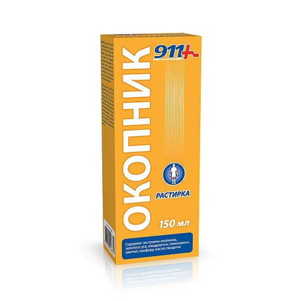 Растирка «Окопник» 911 предназначена для наружного применения и обладает охлаждающим и обезболивающим действием. Продукт содержит экстракт окопника, который известен своими противовоспалительными и противоотечными свойствами. Растирка помогает при болях в мышцах и суставах, ушибах и растяжениях, спазмах и побочных эффектах после физических нагрузок. Она быстро впитывается и не оставляет жирной пленки. Рекомендуется использовать при первых признаках болевых ощущений. Объем бутылки составляет 150 мл.