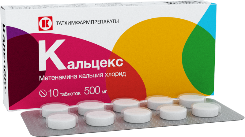 1 таблетка содержит: действующее вещество: метенамина кальция хлорида декагидрат (кальцекс) - 500 мг. Вспомогательные вещества: тальк, кальция стеарат.