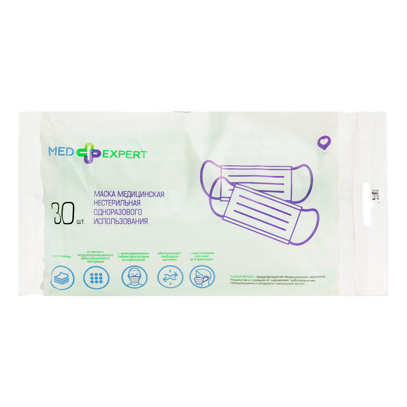 Med Expert Маска медицинская одноразовая зеленая 30 шт.