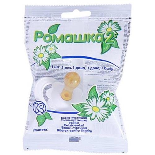 Служит для удовлетворения сосательного рефлекса. Учитывает возрастные особенности ребенка. Латексный баллончик оснащен системой "air-free", имеет классическую круглую форму. Для детей с рождения. Выпускается в варианте с кольцом (дневная). Соска-пустышка латексная, тип 2 А. Модель «Ромашка 2» с кольцом. Возраст 0+.