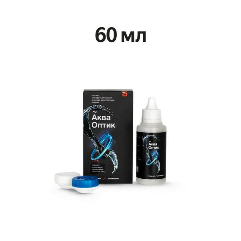 Раствор предназначен для ежедневного ухода за всеми типами контактных линз и обеспечивает очистку, удаление протеиновых отложений, промывание, дезинфекцию, хранение контактных линз для длительного комфортного ношения. Раствор подходит для особо чувствительных глаз. Благодаря специальному увлажняющему комплексу, содержащему природный компонент – натрия гиалуронат (гиалуроновая кислота), раствор АкваОптик обеспечивает мягкое скольжение линзы по поверхности роговицы, длительное оптимальное увлажнение и комфорт. Натрия гиалуронат является физиологическим полисахаридным соединением, содержащимся как в тканях глаза, так и в других тканях и жидкостях организма человека. Особым физико-химическим свойством молекул натрия гиалуроната является их выраженная способность связывать молекулы воды. При применении раствора АкваОптик на поверхности линзы образуется тонкая пленка, предохраняющая глаза от пересыхания и раздражения. Действие защитной пленки начинается практически сразу, тем самым глаза надолго защищены от ощущения сухости. Эффективный очиститель полоксамер 407 связывает протеиновые отложения, препятствуя их образованию на линзах. Входящий в состав раствора АкваОптик полигексаметиленбигуанида гидрохлорид обладает дезинфицирующим действием, защищая глаза и контактные линзы от патогенной микрофлоры. Янтарная кислота обладает выраженным антигипоксическим и антиоксидантным действием, в растворе АкваОптик янтарная кислота снижает риск развития гипоксических осложнений, связанных с ношением контактных линз. Трегалоза является веществом природного происхождения, встречающимся в самых разнообразных организмах. Особенность трегалозы состоит в способности к защитной роли в отношении клеточных мембран в ангидробиотическом механизме растений и микроорганизмов (состояние замедленного метаболизма, которое позволяет им выживать в условиях обезвоживания). Благодаря своим физико-химическим характеристикам, трегалоза дополняет увлажняющие, антиоксидантные и защитные свойства раствора. Форма выпуска: По 60 мл во флакон из пластика с рассекателем и крышкой. По 1 флакону вместе с инструкцией по применению и контейнером для линз или без контейнера для линз в пачке из картона. Допускается вложение в пачку из картона контейнера для линз в пакете или без пакета.