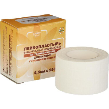 Лейкопластырь Leiko фиксирующий медицинский на тканой основе 2.5 х 250 см