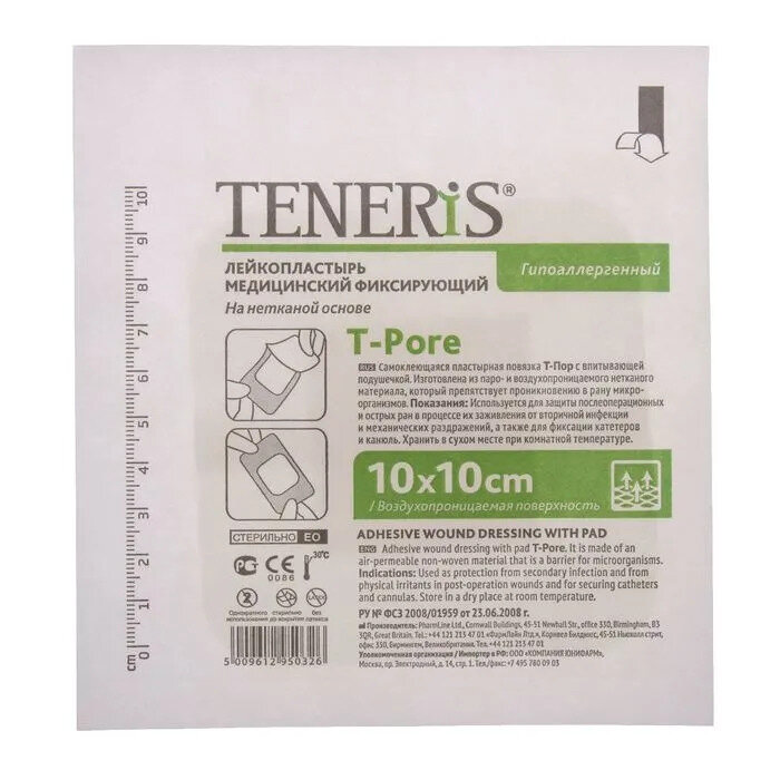 Бренд teneris - эксперт в области профессиональных медицинских перевязочных материалов. лейкопластырь teneris медицинский фиксирующий на нетканой основе - повязка пластырного типа медицинская фиксирующая, стерильная размеры: 10 см х 10 см материал: нетканая основа стерилизация оксидом этилена. Основа из хирургического нетканого материала: супер - дышащий, отрывается без боли, антитравматическое покрытие раневой подушечки, стерильно.