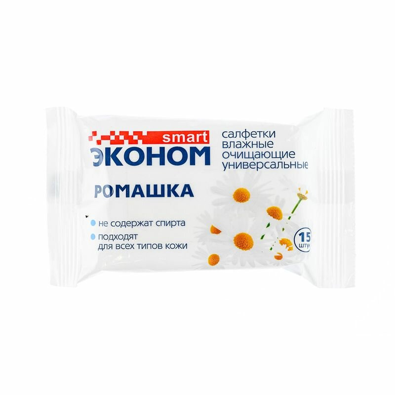 Влажные салфетки Эконом Smart ромашка 15 шт.