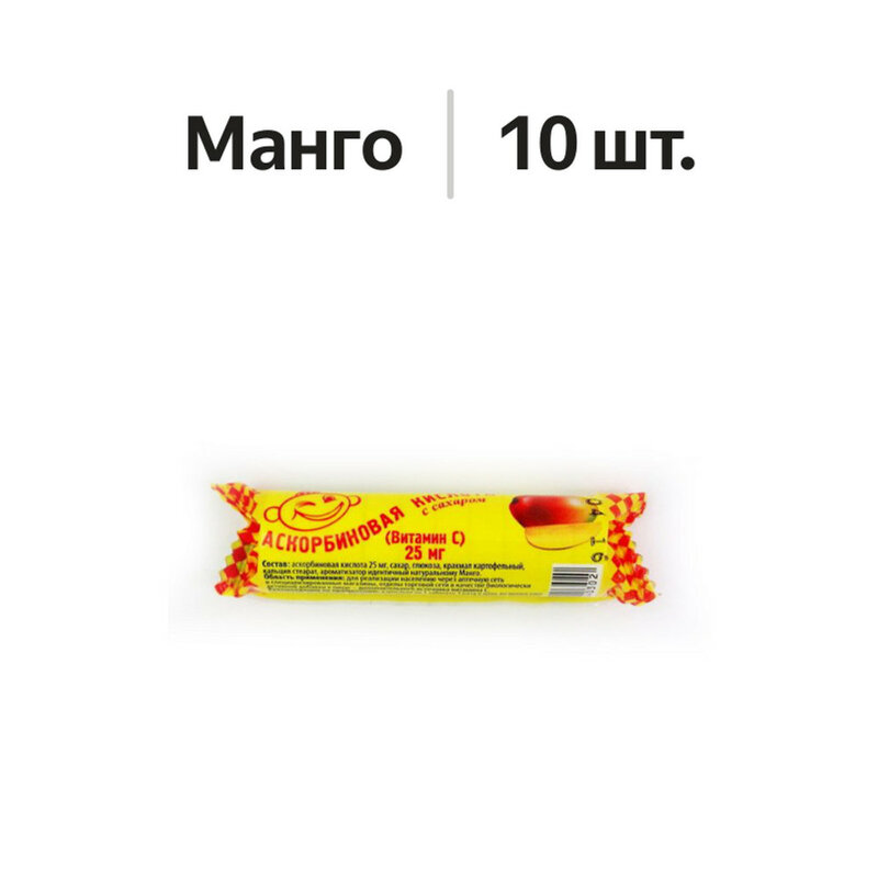 сахар, глюкоза, крахмал картофельный, аскорбиновая кислота, кальция стеарат, ароматизатор идентичный натуральному манго