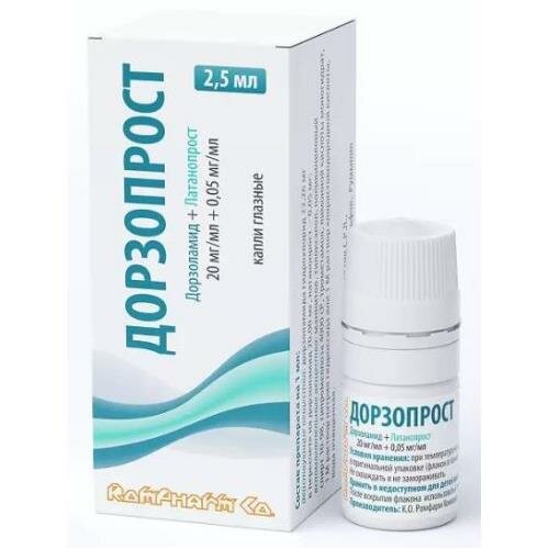Дорзоламид Со стороны нервной системы: головная боль, головокружение, астения/усталость, парестезии. Со стороны органа зрения: воспаление века, слезотечение, раздражение и шелушение века, иридоциклит, точечный кератит, транзиторная миопия (проходящая после отмены препарата). Аллергические реакции: ангионевротический отек, бронхоспазм, крапивница, зуд, сыпь. Со стороны дыхательной системы: носовое кровотечение. Латанопрост Инфекционные и паразитарные заболевания: частота неизвестна - герпетический кератит. Со стороны нервной системы: частота неизвестна - головокружение, головная боль. Со стороны органа зрения: очень часто - гиперпигментация радужной оболочки, конъюнктивальная инъекция, раздражение глаз от легкой до средней степени (чувство жжения, ощущение песка в глазах, зуд, покалывание и ощущение инородного тела), изменение ресниц (увеличение длины, толщины, количества и пигментации); часто - преходящие точечные эрозии эпителия (преимущественно бессимптомные), блефарит, боль в глазу; нечасто - отек век, сухость слизистой оболочки глаза, кератит, затуманивание зрения, конъюнктивит; редко - ирит/увеит (преимущественно у предрасположенных пациентов), отек макулы, отек век, отек роговицы, эрозия роговицы, периорбитальный отек, потемнение кожи век, реакции со стороны кожи век, изменение направления роста ресниц, утолщение, потемнение и удлинение ресниц, дистихиаз, фотофобия; очень редко - изменения в периорбитальной области и в области ресниц, приводящие к углублению борозды верхнего века; частота неизвестна - киста радужной оболочки, псевдопемфигоид конъюнктивы. Со стороны сердечно-сосудистой системы: нечасто - стенокардия, ощущение сердцебиения; частота неизвестна - нестабильная стенокардия. Со стороны дыхательной системы: редко - бронхоспазм (в т.ч. обострение заболевания у пациентов с бронхиальной астмой в анамнезе), одышка. Со стороны кожи и подкожных тканей: нечасто - кожная сыпь; редко - кожный зуд; очень редко - потемнение кожи век и местные кожные реакции на веках. Со стороны костно-мышечной системы: частота неизвестна - миалгия, артралгия. Общие расстройства: очень редко - боль в груди.