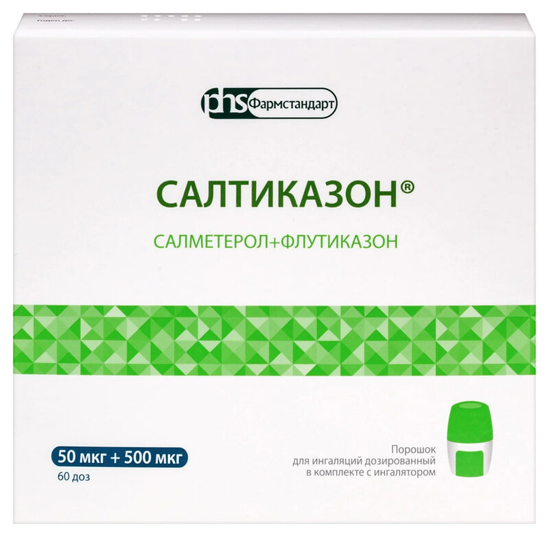 Салтиказон® предназначен для регулярного лечения бронхиальной астмы, если показана комбинированная терапия бета2-адреномиметиком длительного действия и ингаляционным глюкокортикостероидом: