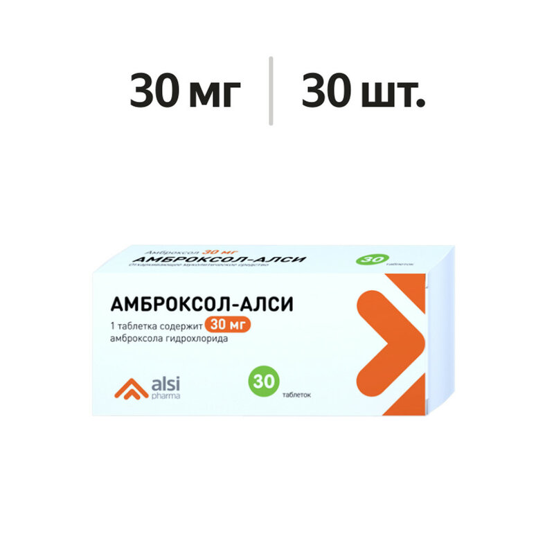 Действующее вещество: амброксола гидрохлорид - 30 мг. Вспомогательные вещества: лактозы моногидрат - 171 мг, крахмал картофельный - 36 мг, кремния диоксид коллоидный (аэросил) - 1.8 мг, магния стеарат - 1.2 мг.