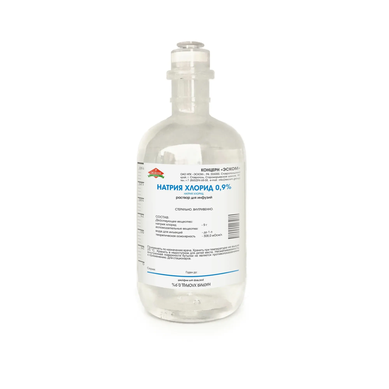 Плазмозамещающее средство. Оказывает дезинтоксикационное и регидратирующее действие. Восполняет дефицит натрия при различных патологических состояниях организма. 0,9 % раствор натрия хлорида изотоничен плазме человека, поэтому быстро выводится из сосудистого русла, лишь временно увеличивая объем циркулирующей крови (эффективность при кровопотерях и шоке недостаточна). Фармакокинетика. Концентрация ионов натрия - 142 ммоль/л (плазмы) и 145 ммоль/л (интерстициальной жидкости), концентрация хлорида - 101 ммоль/л (интерстициальной жидкости). Выводится почками.