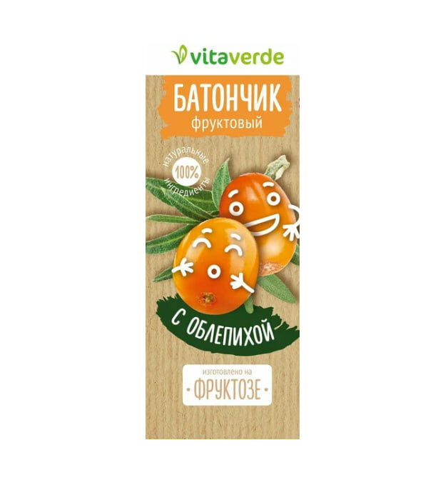 Батончик Vitaverde фруктовый неглазированный с облепихой на фруктозе 30 г