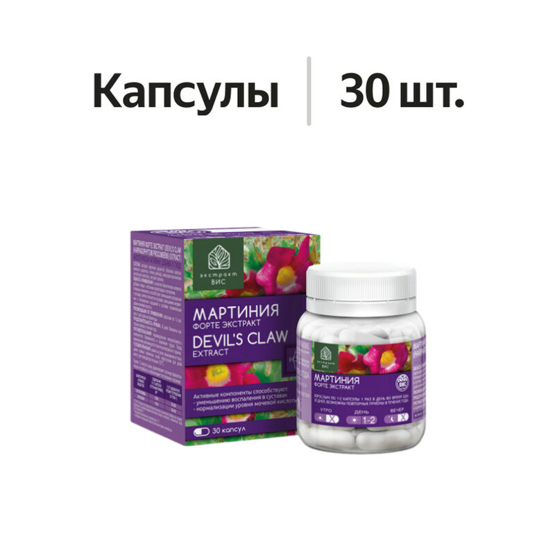 экстракт мартинии душистой, оболочка капсулы (желатин, краситель: титана диоксид), микрокристаллическая целлюлоза (носитель), экстракт арахиса