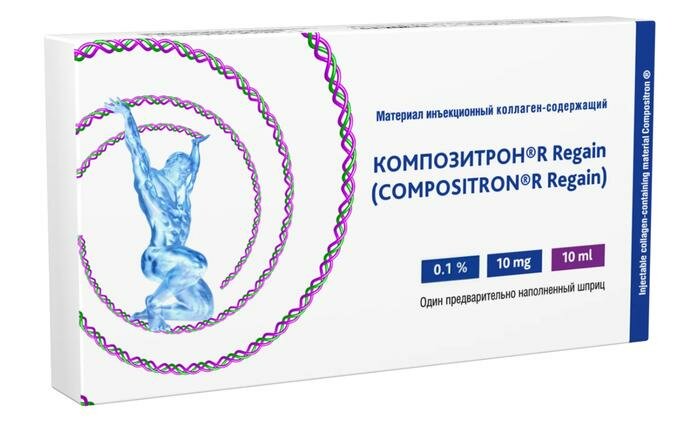 Композитрон® Regain материал инъекционный коллаген-содержащий 1 мг/мл (0,1%) , в шприце по 10 мл.