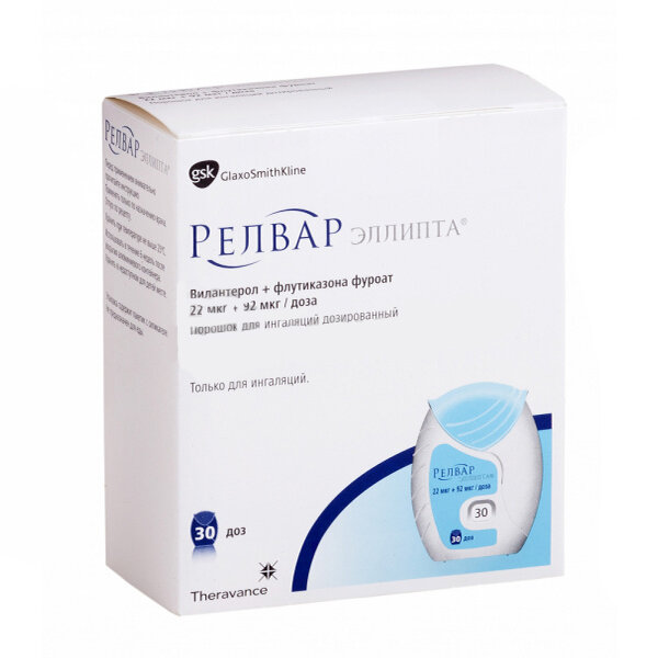 Бронхиальная астма. Пациент должен быть проинформирован о необходимости регулярного применения препарата Релвар Эллипта даже в случае бессимптомного течения заболевания. При возникновении симптомов заболевания в период между приемами препарата в качестве неотложной терапии следует применять ингаляционные формы бета2-агонистов короткого действия. Врач должен регулярно оценивать состояние пациента, чтобы обеспечить своевременное назначение оптимальной дозы препарата Релвар Эллипта. Доза может быть изменена только по рекомендации врача.