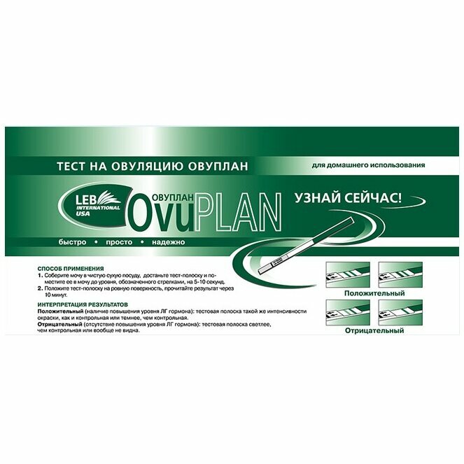 Высокочувствительный, специфический, качественный иммунохроматографический анализ на ЛГ гормон по моче. Чувствительность теста 30 мМЕ/мл ЛГ, специфичность 100%.