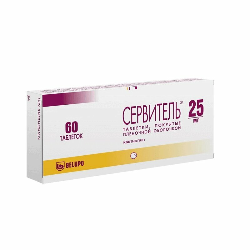 Внутрь, независимо от приема пищи. Взрослые Лечение шизофрении Сервитель® назначают 2 раза в сутки. Суточная доза для первых 4-х дней терапии составляет: 1-й день - 50 мг, 2-й день - 100 мг, 3-й день - 200 мг, 4-й день - 300 мг. Начиная с 4-го дня, доза должна подбираться до клинически эффективной дозы, которая обычно находится в пределах от 300 до 450 мг/сут. В зависимости от клинического эффекта и индивидуальной переносимости пациентом, доза может варьировать в пределах от 150 до 750 мг/сут. Максимальная рекомендованная суточная доза составляет 750 мг. Лечение маниакальных эпизодов в структуре биполярного расстройства Сервитель® применяется в качестве монотерапии или в качестве адъювантной терапии для стабилизации настроения. Сервитель® назначают 2 раза в сутки. Суточная доза для первых 4-х дней терапии составляет: 1-й день - 100 мг, 2-й день - 200 мг, 3-й день - 300 мг, 4-й день - 400 мг. В дальнейшем к 6-му дню терапии суточная доза препарата может быть увеличена до 800 мг. Увеличение суточной дозы не должно превышать 200 мг в день. В зависимости от клинического эффекта и индивидуальной переносимости пациентом, доза может варьировать в пределах от 200 до 800 мг/сут. Обычно эффективная доза составляет от 400 до 800 мг/сут. Максимальная рекомендованная суточная доза составляет 800 мг. Пожилые У пожилых пациентов начальная доза кветиапина составляет 25 мг/сут. Дозу следует увеличивать ежедневно на 25-50 мг до достижения эффективной дозы, которая, вероятно, будет меньше, чем у молодых пациентов. Пациенты с почечной и печеночной недостаточностью У пациентов с почечной или печеночной недостаточностью рекомендуется начинать терапию кветиапином с 25 мг/сут. Рекомендуется увеличивать дозу ежедневно на 25-50 мг до достижения эффективной дозы.