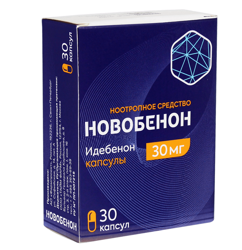 В 1 капс.: идебенон 30 мг. Вспомогательные вещества: лактозы моногидрат, крахмал картофельный, целлюлоза микрокристаллическая, повидон К17, магния стеарат.