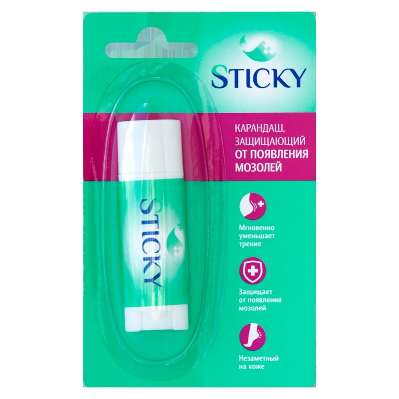 Карандаш, защищающий от появления мозолей Карандаш Sticky помогает предотвратить появление мозолей, снижая трение кожи о внутренние поверхности обуви. Средство экономично расходуется, не оставляет следов и комфортно ощущается на коже.