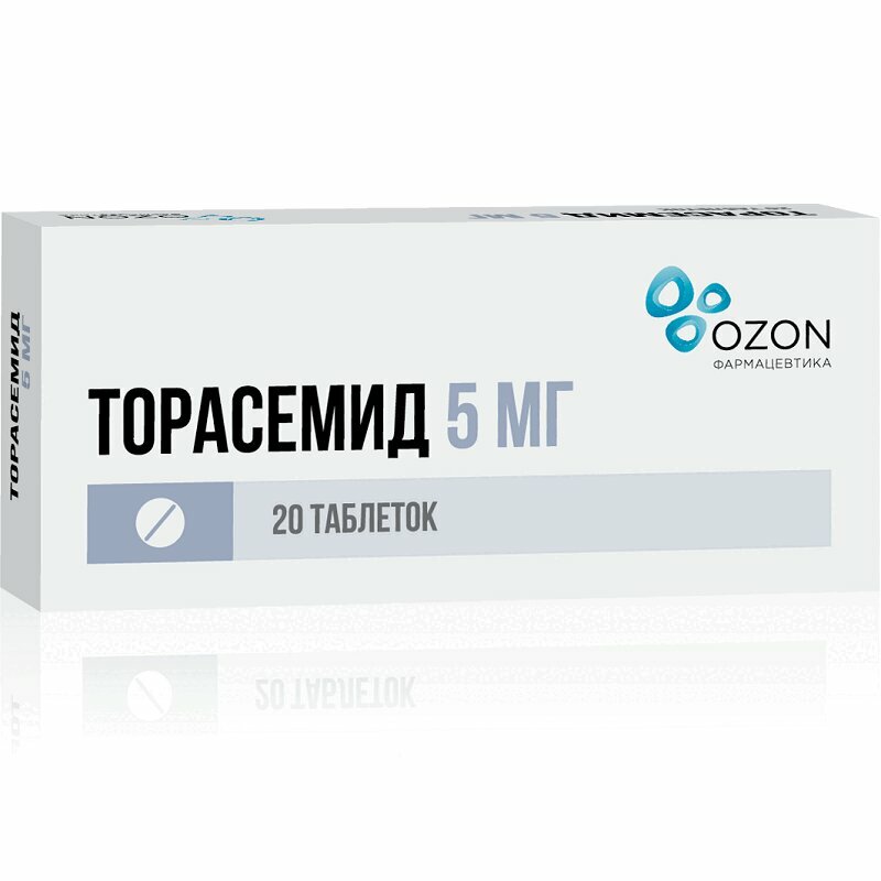 Состав на 1 таблетку: Действующее вещество: торасемид - 5 мг Вспомогательные вещества: лактозы моногидрат (сахар молочный) - 90,4 мг, карбоксиметилкрахмал натрия - 3,0 мг, магния стеарат - 0,8 мг, кремния диоксид коллоидный - 0,8 мг.