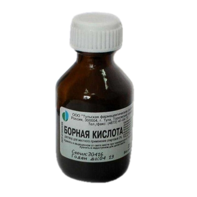 Действующее вещество: борная кислота - 3 г. Вспомогательное вещество: этанол (этиловый спирт) 70 % - до 100 мл.