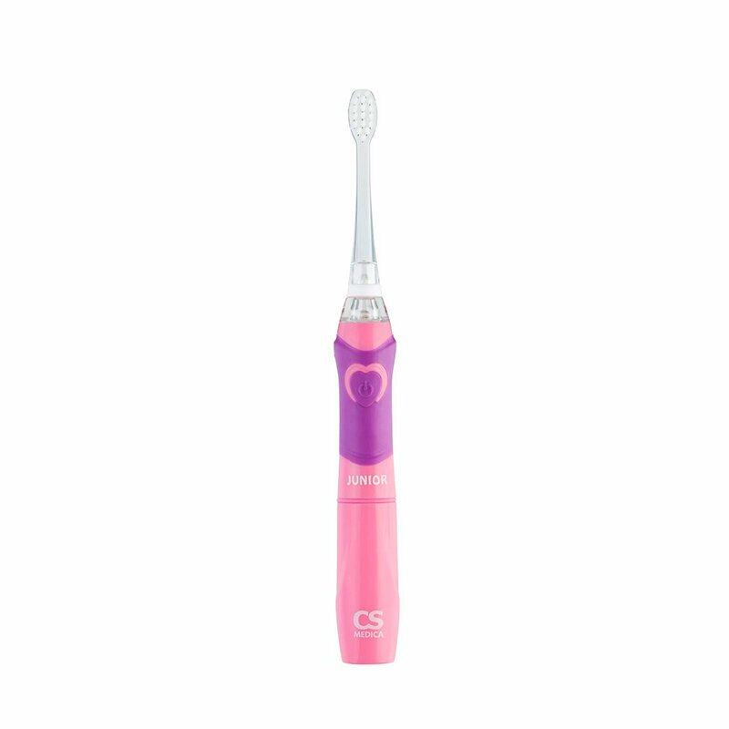 Электрическая звуковая зубная щётка подходит для детей в возрасте от пяти лет. Ручка имеет резиновую вставку и специальную эргономичную форму, удобную для маленьких детских ручек. Пользоваться прибором просто, управление состоит из одной кнопки. Через две минуты предусмотрено самоотключение, помимо этого срабатывает промежуточный таймер через каждые 30 секунд. Диодная лампочка чистящей насадки придаёт интригующее свечение насадке и делает чистку зубов интересной для ребёнка. Щётка мягко и бережно счищает зубной налёт и остатки пищи. Эффективность и безопасность зубной щётки CS Medica-562 доказана в клинических условиях.