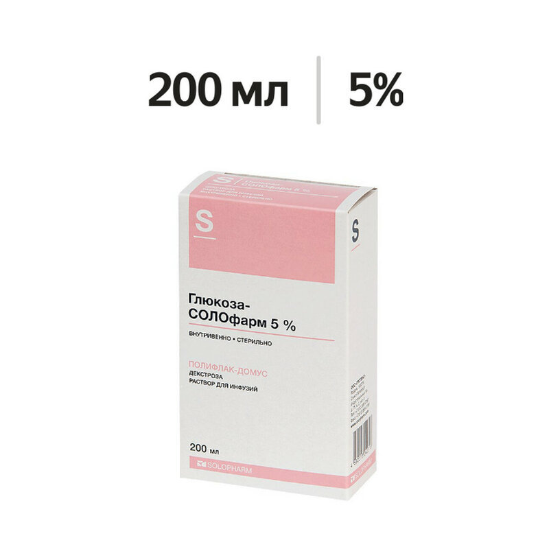 Глюкоза-СОЛОфарм раствор для инфузий 5% 200 мл