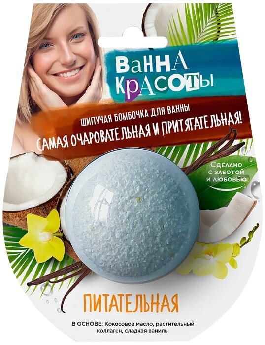 Шипучая бомбочка для ванны Питательная – это роскошный питательный коктейль на основе масел и ванили. Она глубоко питает, придает коже невероятную нежность и превращает принятие ванны в изысканное удовольствие. Кокосовое масло увлажняет кожу, насыщает ее незаменимыми омега-кислотами и придает мягкость. Растительный коллаген разглаживает кожу, восстанавливает тонус и упругость, а сладкая ваниль отвечает за настроение и аромат. Невозможно устоять!