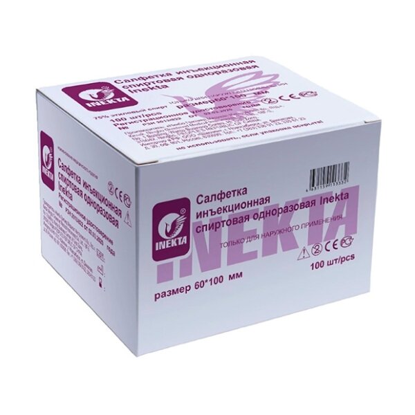 Салфетка спиртовая Inekta для дезинфекции кожи 60 х 100 мм 100 шт.