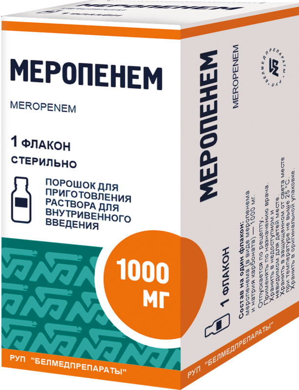Действующее вещество: меропенема тригидрат 1140 мг (в пересчете на меропенем 1000 мг).