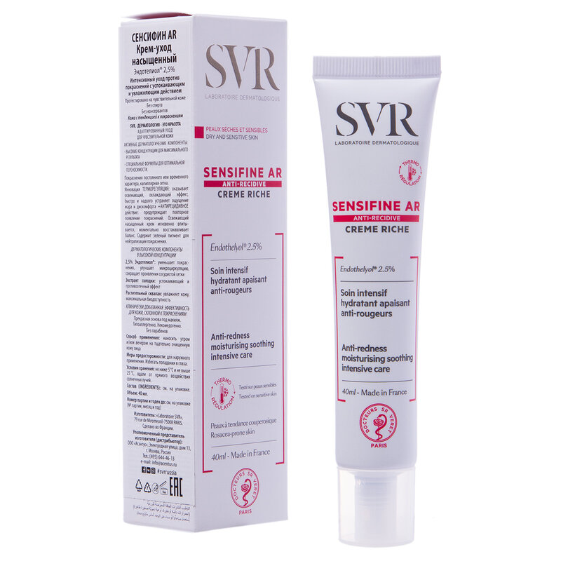 SVR Сенсифин AR Крем-уход насыщенный - средство интенсивного ухода против покраснений для сухой кожи. Предназначен для взрослых.