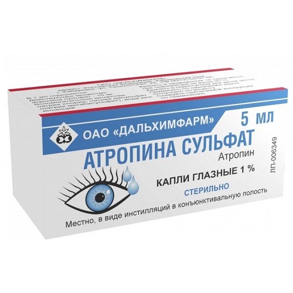 При местном применении в офтальмологии расширяет зрачок, затрудняет отток внутриглазной жидкости, повышает внутриглазное давление, вызывает паралич аккомодации. Зрачок, расширенный, атропином, практически не суживается при инстилляции холиномиметиков. Максимальное расширение зрачка наступает через 30-40 мин после инстилляции, исчезает через 7-10 дней.