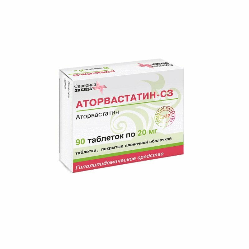 Синтетическое гиполипидемическое средство. Аторвастатин - селективный конкурентный ингибитор ГМГ-КоА-редуктазы, ключевого фермента, превращающего 3-гидрокси-3-метилглютарил-КоА в мевалонат - предшественник стероидов, включая холестерин. У пациентов с гомозиготной и гетерозиготной семейной гиперхолестеринемией, несемейными формами гиперхолестеринемии и смешанной дислипидемией аторвастатин снижает концентрацию в плазме крови холестерина (Хс), холестерина липопротеидов низкой плотности (Хс-ЛПНП) и аполипопротеина В (апо-B), а также холестерина липопротеидов очень низкой плотности (Хс-ЛПОНП) и триглицеридов (ТГ), вызывает повышение концентрации холестерина липопротеидов высокой плотности (Хс-ЛПВП). Аторвастатин снижает концентрацию холестерина и липопротеидов в плазме крови, ингибируя ГМГ-КоА-редуктазу и синтез холестерина в печени и увеличивая число рецепторов ЛПНП на поверхности гепатоцитов, что приводит к усилению захвата и катаболизма Хс-ЛПНП. Аторвастатин уменьшает образование Хс-ЛПНП и число частиц ЛПНП, вызывает выраженное и стойкое повышение активности ЛПНП-рецепторов в сочетании с благоприятными качественными изменениями ЛПНП-частиц, а также снижает концентрацию Хс-ЛПНП у пациентов с гомозиготной наследственной семейной гиперхолестеринемией, устойчивой к терапии другими гиполипидемическими средствами. Аторвастатин в дозах от 10 мг до 80 мг снижает концентрацию холестерина на 30-46%, Хс-ЛПНП - на 41-61%, апо-B - на 34-50% и ТГ - на 14-33%. Результаты терапии сходны у пациентов с гетерозиготной семейной гиперхолестеринемией, несемейными формами гиперхолестеринемии и смешанной гиперлипидемией, в т.ч. у пациентов с сахарным диабетом 2 типа. У пациентов с изолированной гипертриглицеридемией аторвастатин снижает концентрацию холестерина, Хс-ЛПНП, Хс-ЛПОНП, апо-B и ТГ и повышает концентрацию Хс-ЛПВП. У пациентов с дисбеталипопротеинемией аторвастатин снижает концентрацию холестерина липопротеидов промежуточной плотности (Хс-ЛППП). У пациентов с гиперлипопротеинемией типа IIа и IIb по классификации Фредриксона среднее значение повышения концентрации Хс-ЛПВП при лечении аторвастатином (10-80 мг) по сравнению с исходным показателем составляет 5.1-8.7% и не зависит от дозы. Имеется значительное дозозависимое снижение величины соотношений: общий холестерин/Хс-ЛПВП и Хс-ЛПНП/Хс-ЛПВП на 29-44% и 37-55%, соответственно. Аторвастатин-СЗ в дозе 80 мг достоверно снижает риск развития ишемических осложнений и показателя смертности на 16% после 16-недельного курса, а риск повторной госпитализации по поводу стенокардии, сопровождающейся признаками ишемии миокарда, на 26% (исследование уменьшения выраженности ишемии миокарда на фоне интенсивной гиполипидемической терапии (MIRACL)). У пациентов с различными исходными концентрациями Хс-ЛПНП Аторвастатин-СЗ вызывает снижение риска ишемических осложнений и смертности (у пациентов с инфарктом миокарда без зубца Q и нестабильной стенокардией, также как у мужчин и женщин, и у пациентов в возрасте моложе и старше 65 лет). Снижение концентрации в плазме крови Хс-ЛПНП лучше коррелирует с дозой аторвастатина, чем с его концентрацией в плазме крови. Дозу подбирают с учетом терапевтического эффекта. Терапевтический эффект достигается через 2 недели после начала терапии, достигает максимума через 4 недели и сохран