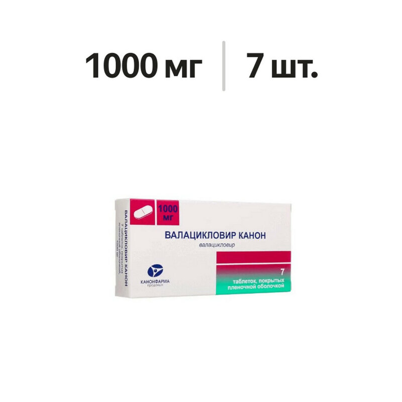 Препарат Валацикловир Канон можно принимать вне зависимости от приема пищи, таблетки следует запивать водой. Лечение инфекций кожи и слизистых оболочек, вызванных ВПГ, включая впервые выявленный и рецидивирующий генитальный герпес (Herpes genitalis), а также лабиальный герпес (Herpes labialis) Иммунокомпетентные взрослые и подростки в возрасте от 12 до 18 лет Рекомендуемая доза составляет 500 мг 2 раза в сутки. В случае рецидивов лечение должно продолжаться 3 или 5 дней. В случае первичного герпеса, который может протекать в более тяжелой форме, лечение следует начинать как можно раньше, а его продолжительность должна быть увеличена с 5 до 10 дней. При рецидивах ВПГ наиболее верным считается назначение препарата Валацикловир Канон в продромальном периоде или сразу же после появления первых симптомов заболевания. Применение валацикловира может предотвратить развитие поражения, если его применять при первых признаках и симптомах рецидива, вызванного ВПГ. В качестве альтернативного лечения лабиального герпеса эффективно назначение препарата Валацикловир Канон в дозе 2000 мг 2 раза в сутки в течение 1 суток. Вторая доза должна быть принята приблизительно через 12 часов (но не раньше, чем через 6 часов) после приема первой дозы. При использовании такого режима дозирования продолжительность лечения не должна превышать 1 сутки, так как превышение продолжительности этого курса лечения не приводит к дополнительной клинической пользе. Терапия должна быть начата при появлении самых ранних симптомов лабиального герпеса (т. е. пощипывание, зуд, жжение). Профилактика (супрессия) рецидивов инфекции кожи и слизистых оболочек, вызванных ВПГ, включая генитальный герпес, в том числе у взрослых с иммунодефицитом Иммунокомпетентные взрослые и подростки в возрасте от 12 до 18 лет У иммунокомпетентных пациентов рекомендуемая доза составляет 500 мг 1 раз в сутки. Через 6-12 месяцев лечения необходимо оцепить эффективность терапии. Взрослые с иммунодефицитом У взрослых пациентов с иммунодефицитом рекомендуемая доза составляет 500 мг 2 раза в сутки. Через 6-12 месяцев лечения необходимо оцепить эффективность терапии. Профилактика инфекций, вызванных ЦМВ, и заболеваний после трансплантации паренхиматозных органов Взрослые и подростки в возрасте от 12 до 18 лет Рекомендуемая доза составляет 2000 мг 4 раза в сутки, назначается как можно раньше после трансплантации. Дозу следует снижать в зависимости от клиренса креатинина. Продолжительность лечения обычно составляет 90 дней, но у пациентов с высоким риском курс лечения может быть продлен. Лечение опоясывающего герпеса (Herpes zoster) и офтальмического опоясывающего герпеса Взрослые Рекомендуемая доза составляет 1000 мг 3 раза в сутки в течение 7 дней. Особые группы пациентов Дети Эффективность лечения препаратом Валацикловир Канон у детей не исследовали. Пациенты пожилого возраста Необходимо учитывать возможное нарушение функции почек у пациентов пожилого возраста, доза препарата Валацикловир Канон должна быть соответствующим образом скорректирована. Необходимо поддерживать адекватный водно-электролитный баланс. Пациенты с нарушением функции почек Дозу препарата Валацикловир Канон рекомендуется уменьшать у пациентов с выраженным нарушением функции почек (см. режим дозирования в Таблице 2). У таких пациентов необходимо под