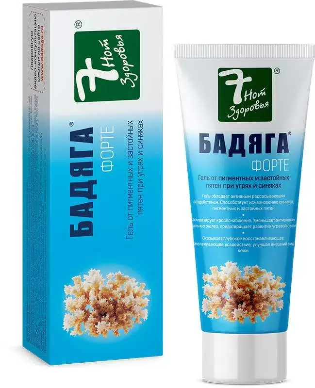 Гель «Бадяга» - создан на основе пресноводной губки Бадяги - старинного средства с уникальными рассасывающими, бактерицидными свойствами. Воздействие геля «Бадяга Форте» основано на механическом раздражении кожи, измельченными кремниевыми иголочками, которые внедряются в верхний слой эпидермиса, вызывая местное раздражение кожных покровов, расширение подкожных капилляров и более глубоко залегающих кровеносных сосудов. Это способствует активизации поверхностного кровоснабжения, ослаблению местных болей и обеспечивает превосходный рассасывающий эффект на пораженных местах. Происходит локальное освобождение биологически активных веществ: аутакоидов, кининов, гистамина, простагландинов, которые способствуют заживлению поврежденных тканей, рассасыванию рубцов и уплотнений, а так же восстанавливает местный иммунитет и защитные функции кожи.