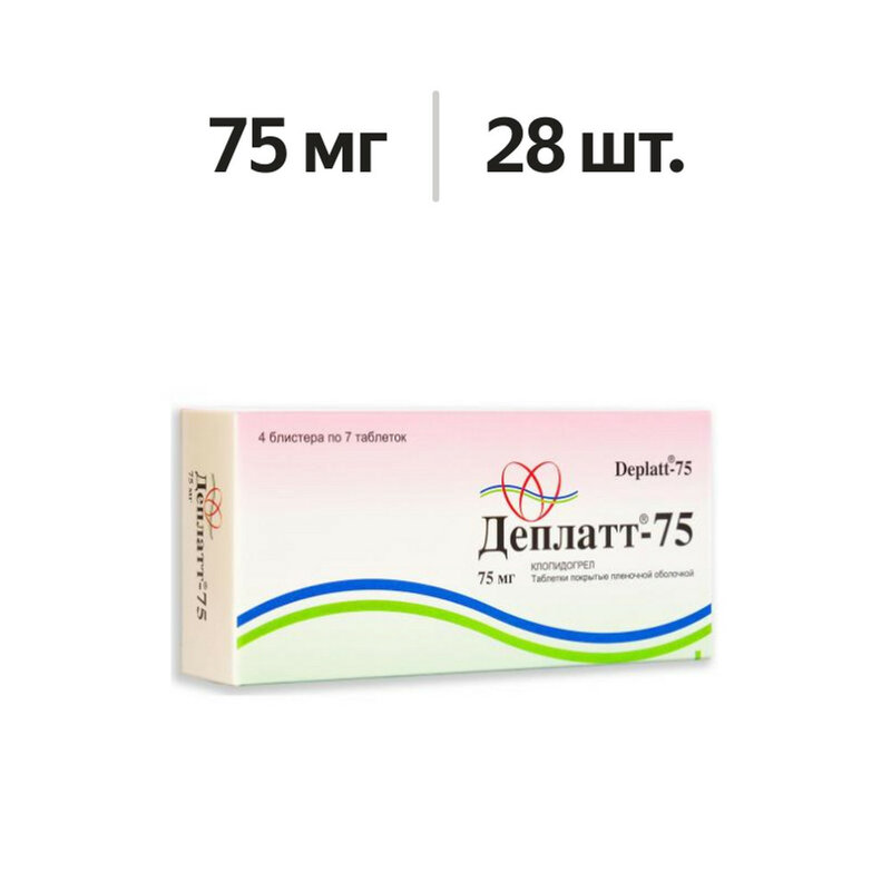 Внутрь, независимо от приема пищи. Взрослые и пациенты пожилого возраста с нормальной активностью изофермента CYP2C19: Инфаркт миокарда, ишемический инсульт или диагностированная окклюзионная болезнь периферических артерий Препарат принимают по 1 таблетке (75 мг) один раз в сутки. Острый коронарный синдром без подъема сегмента ST (нестабильная стенокардия, инфаркт миокарда без зубца Q) Лечение препаратом Деплатт®-75 начинают с однократного приема нагрузочной дозы - 300 мг, а затем принимают по 75 мг 1 раз в сутки (в сочетании с АСК в дозах 75-325 мг/сут). Поскольку применение более высоких доз АСК связано с увеличением риска кровотечений, рекомендуемая при этом показании доза АСК не должна превышать 100 мг. Оптимальная продолжительность лечения официально не определена. Данные клинических исследований подтверждают целесообразность приема препарата до 12 месяцев, а максимальный благоприятный эффект наблюдался через 3 месяца лечения. Острый коронарный синдром с подъемом сегмента ST (острый инфаркт миокарда с подъемом сегмента ST) Клопидогрел следует принимать однократно в сутки в дозе 75 мг с первоначальным однократным приемом нагрузочной дозы 300 мг в комбинации с АСК в сочетании с тромболитиками или без них. У пациентов старше 75 лет лечение клопидогрелом должно начинаться без приема его нагрузочной дозы. Комбинированную терапию начинают как можно раньше после появления симптомов и продолжают в течение по крайней мере 4 недель. Эффективность применения комбинации клопидогрела и АСК при этом показании свыше 4 недель не изучалась. Фибрилляция предсердий (мерцательная аритмия) Клопидогрел следует принимать 1 раз в сутки в дозе 75 мг. В комбинации с клопидогрелом надо начинать и затем продолжать прием АСК (75-100 мг/сут). Пропуск приема очередной дозы - Если прошло менее 12 ч после пропуска приема очередной дозы, то следует немедленно принять пропущенную дозу препарата, а затем следующие дозы принимать в обычное время. - Если прошло более 12 ч после пропуска приема очередной дозы, то пациент должен принять следующую дозу в обычное время (не следует принимать двойную дозу). Пациенты с генетически обусловленной сниженной активностью изофермента CYP2C19 Низкая активность изофермента CYP2C19 ассоциируется с уменьшением антиагрегантного действия клопидогрела. Режим применения более высоких доз (600 мг- нагрузочная доза, затем- 150 мг 1 раз в сутки ежедневно) у пациентов с низкой активностью изофермента CYP2C19 увеличивает антиагрегантное действие клопидогрела (см. "Фармакокинетика"). Однако в настоящий момент в клинических исследованиях, учитывающих клинические исходы, не установлен оптимальный режим дозирования клопидогрела для пациентов с его сниженным метаболизмом из-за генетически обусловленной низкой активности изофермента CYP2C19. Особые группы пациентов Дети. Отсутствует опыт применения препарата у детей. Пациенты пожилого возраста. У пациентов пожилого возраста коррекция режима дозирования не требуется. Пациенты с нарушением функции почек. Имеется ограниченный терапевтический опыт применения препарата у пациентов с почечной недостаточности легкой и средней степени тяжести. Поэтому при применении препарата Деплатт®-75 у таких пациентов следует соблюдать осторожность. Пациенты с нарушением функции печени. Опыт применения препарата у пациентов с п