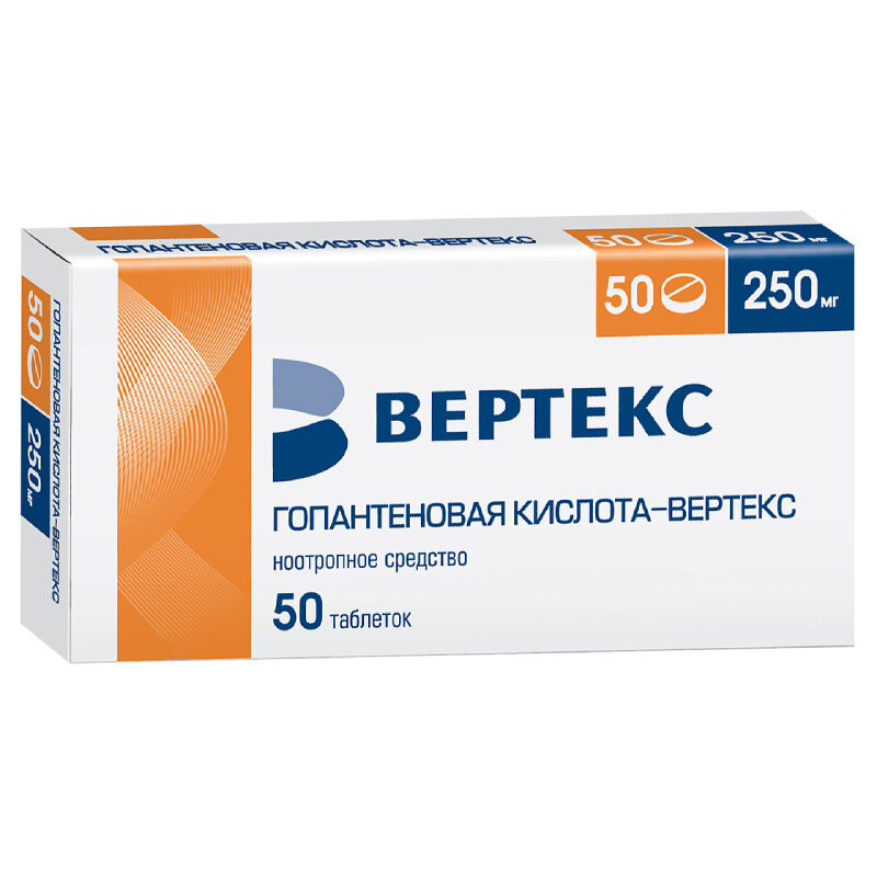 Действующее вещество: кальция гопантенат (кальциевая соль гопантеновой кислоты) - 250,0 мг