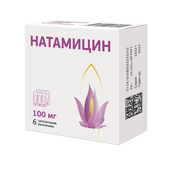 На 1 суппозиторий: натамицин 100 мг. Вспомогательные вещества: макрогола глицерилгидроксистеарат - 75 мг, кремния диоксид коллоидный - 20 мг, жир твердый (Суппоцир АМ) - до получения суппозитория массой 1500 мг.