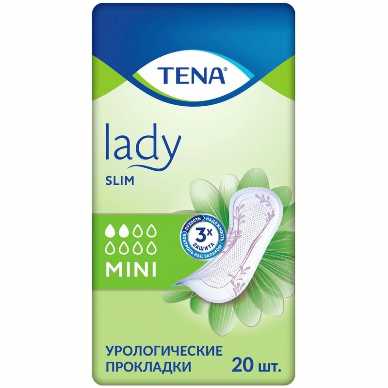 Урологические женские прокладки тонкие Tena Lady Slim Mini предназначены для использования пациентам с легкой степенью недержания разной этиологии для эффективной защиты от жидкости и запахов.