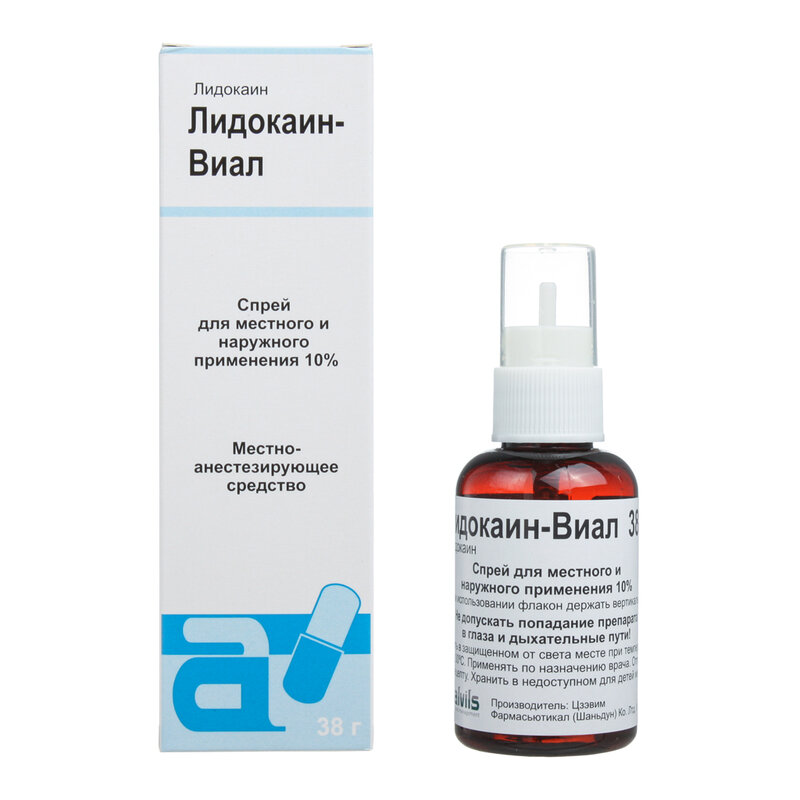 Действующее вещество: лидокаина гидрохлорида моногидрат, в пересчете на лидокаин - 3.8 г; Вспомогательные вещества: этанол - 7.6 г, ксилитол - 0.038 г, 1 М раствор натрия гидроксида - q.s. до pH 4.5-5.5, вода для инъекций - до 38 г.