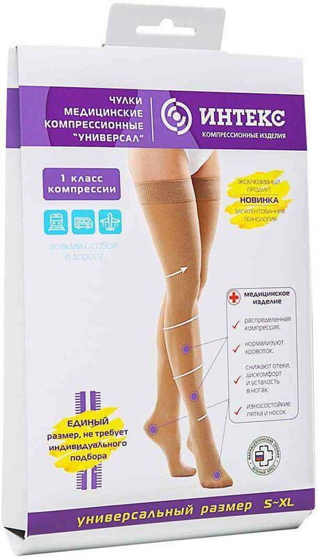Теперь подбор и покупка компрессионного трикотажа, стала удобней: достаточно определиться с типом изделия и выбрать подходящий цвет – черный или бежевый. Компрессия же при этом остается постоянной – 18-21 мм рт. ст. Максимальное давление создается на уровне лодыжки, уменьшаясь по направлению вверх. Такая конструкция позволяет активировать венозный отток и улучшить движение крови к сердцу. При разработке серии «Универсал» специалисты ИНТЕКС взяли за основу стандартные параметры в рамках размеров S-XL. Таким образом, примерно 93% потенциальных потребителей продукции ИНТЕКС смогут воспользоваться новинкой и не подбирать компрессионный трикотаж по дополнительным параметрам. Серия рассчитана на стандартные параметры в рамках размеров S-XL.