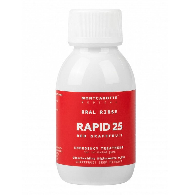 Антибактериальный ополаскиватель RAPID25 эффективно действует на смешанную патогенную микрофлору полости рта, устраняя воспалительные процессы. Способствует регенерации здоровых тканей слизистой, ускоряет процесс заживления. Предотвращает деминерализацию зубной эмали. Обладает мощным противокариозным действием. Рекомендуется использование ополаскивателя в качестве надежного антибактериального средства в период, когда гигиена полости рта затруднена, при проводимом лечение либо травме.Состав препаратов серии Rapid создает на тканях пародонта пленку, благодаря которой обеспечивается продолжительное антибактериальное действие хлоргексидина на слизистой до 12 часов.