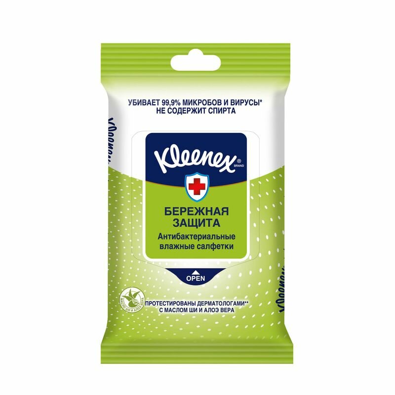 Салфетки влажные Kleenex Бережная защита антибактериальные 10 шт.