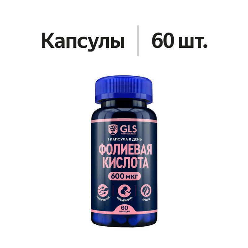 Gls фолиевая кислота, или витамин B9 - биологически активная добавка (БАД) к пище, является необходимым элементом для поддержания здоровья организма. Это особенно важно для беременных женщин. Необходима для успешного зачатия и протекания беременности, способствует нормальному созреванию и функционированию плаценты. Способствует поддержанию сперматогенеза, улучшает качество спермы, снижая риск развития мужского бесплодия и повышая шансы на успешное зачатие. Благоприятно влияет на кожу, укрепляет ногти, улучшает рост и состояние волос. Прием 600 микрограммов в день помогает снизить риск аномалий плода и преждевременных родов, а также способствует нормальному синтезу и созреванию эритроцитов, снижая риск развития анемии, связанной с недостатком фолиевой кислоты.