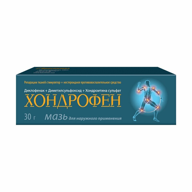 Активное вещество: 100 г препарата содержит хондроитина сульфат натрия - 5.0 г, (в пересчете на сухое вещество) диклофенак натрия - 0.5 г, диметилсульфоксид (димексид) - 10,0 г. Вспомогательные вещества: ланолин - 10.0 г, пентаэритритил диолеат (пентол) - 5.0 г, стеарин - 3.0 г, вазелин - 35.0 г, вода очищенная - до 100 г.