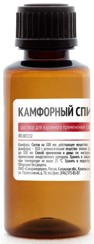 На 100 мл: действующее вещество: камфора (камфора рацемическая) - 2 г.